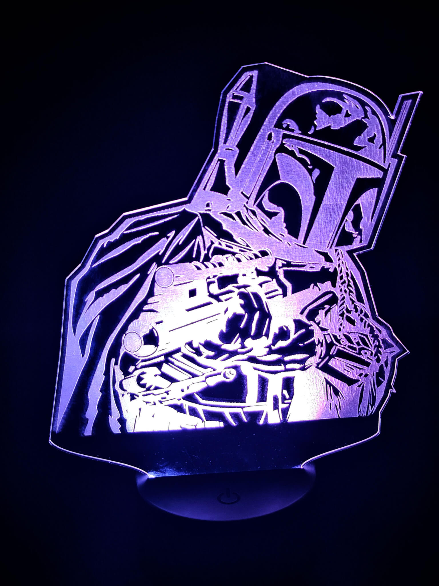 Home Portfolio LED ΦΩΤΙΣΤΙΚΑ Λάμπα Led RGB Mandalorian Mandalorian Χάραξη και κοπή plexiglass με Laser